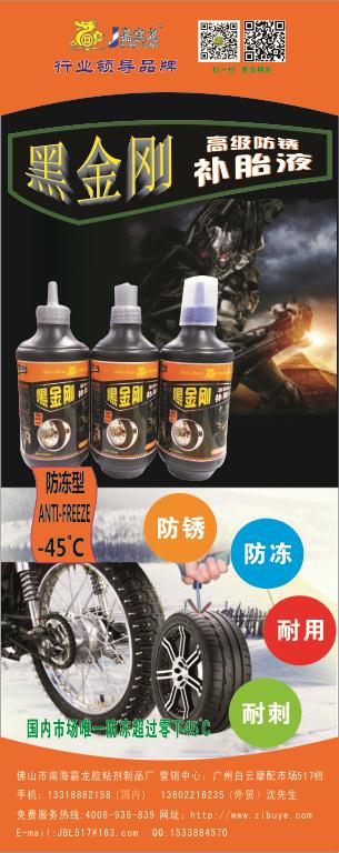 黑金剛高級(jí)補(bǔ)胎液是佛山霸龍膠粘劑公司在原來(lái)的產(chǎn)品基礎(chǔ)上升級(jí)的一款新產(chǎn)品,這款新品是建立在霸龍公司十四年的研發(fā)、銷售、市場(chǎng)檢驗(yàn)的基礎(chǔ)上配伍而成。